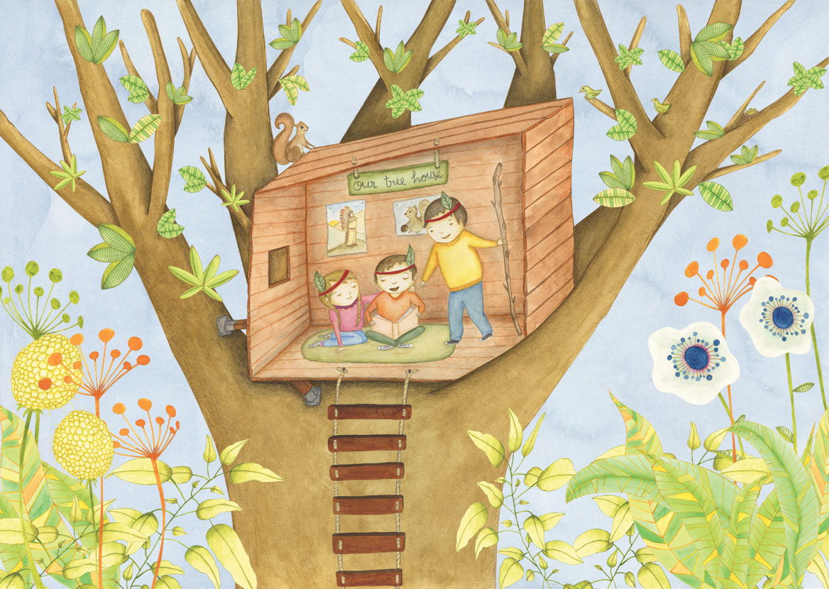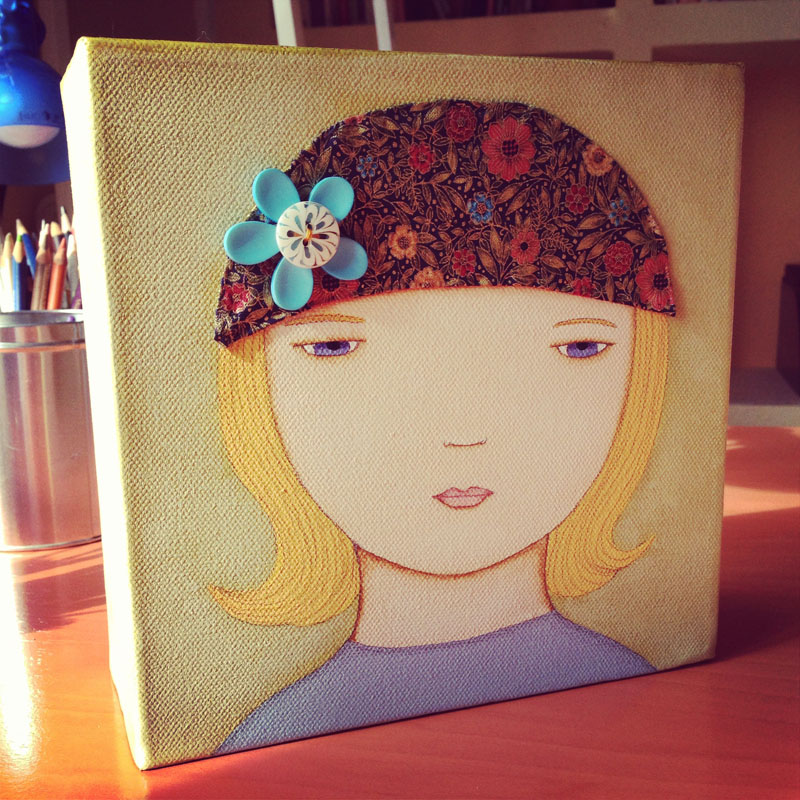 I use a variety of traditional materials (watercolours, acrylics, inks, coloured pencils, crayons and markers) and sometimes I also work with other elements in my pieces, such as fabrics, lace, buttons or recycled materials.